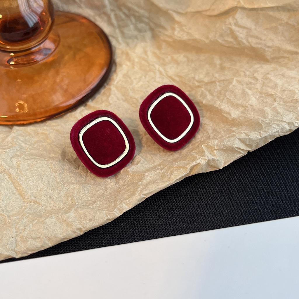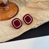 Retro Burgundy French High-End Square Stud Earrings Niche Design Temperament Fashion Earrings