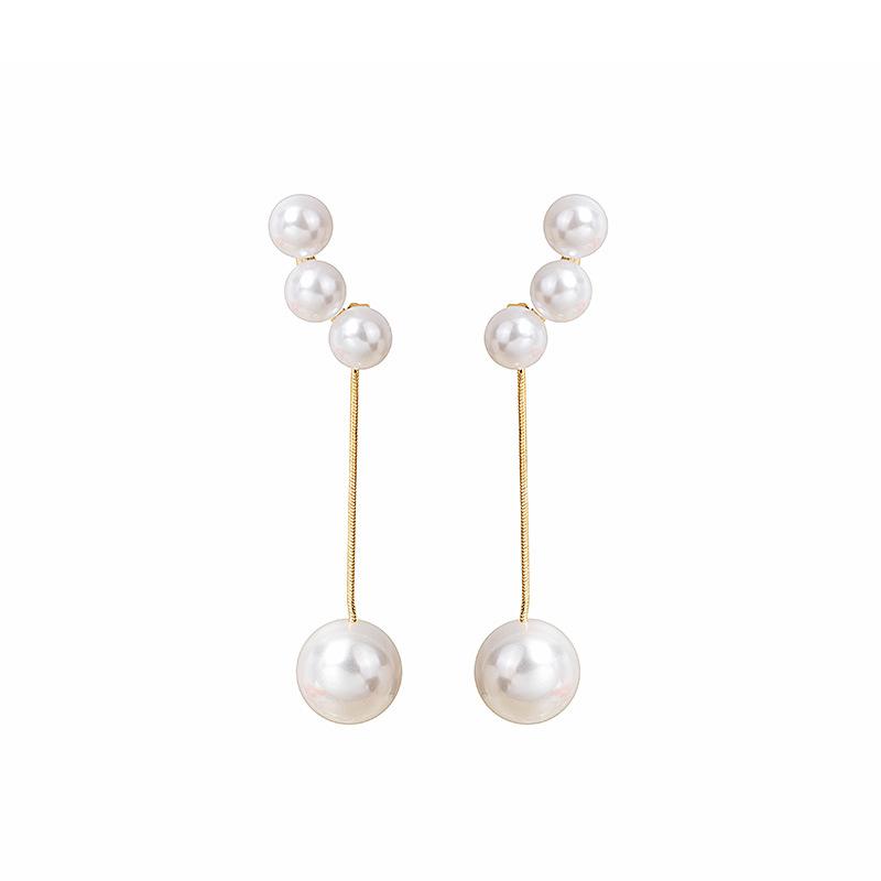 Long Tassel Fashionable Hong Kong Style Metal Pearl Earrings Trendy Fashion Girl Super Fairy Earrings