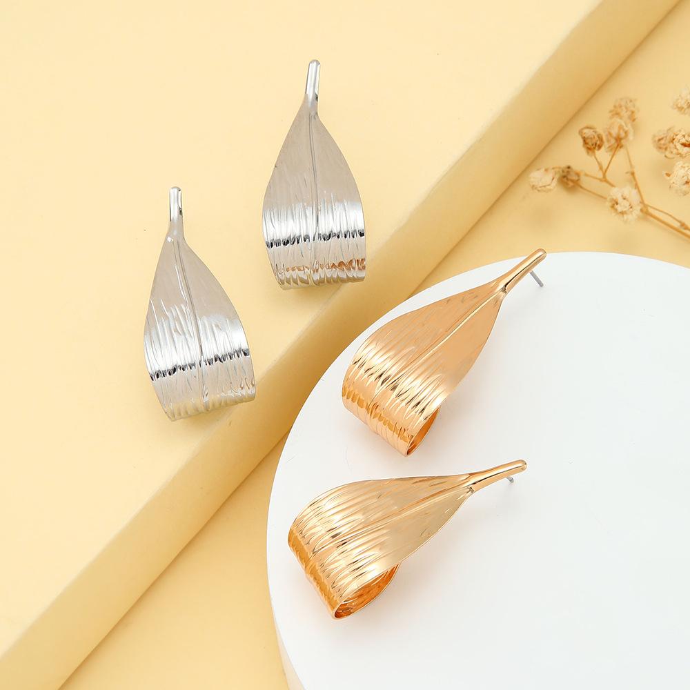 Individual Cold Wind Niche Earrings Metal Texture Curled Leaf Earrings Premium Light Luxury Earrings Earrings Earrings
