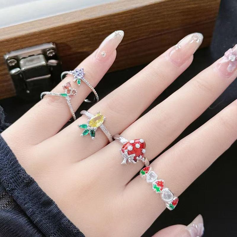 Fruit Series Grape Pineapple Cherry Strawberry Enamel Zir*****Pen Ring Niche High-End Feeling Stacked Ring Woman