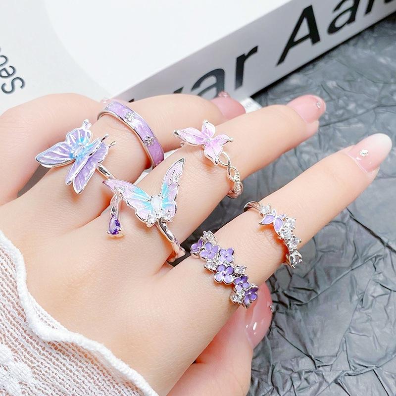 Purple Romantic~ Butterfly Sweet Cool Enamel Dripping Oil Zir*****Pening Ring Exquisite Stacking Temperament Ring Woman