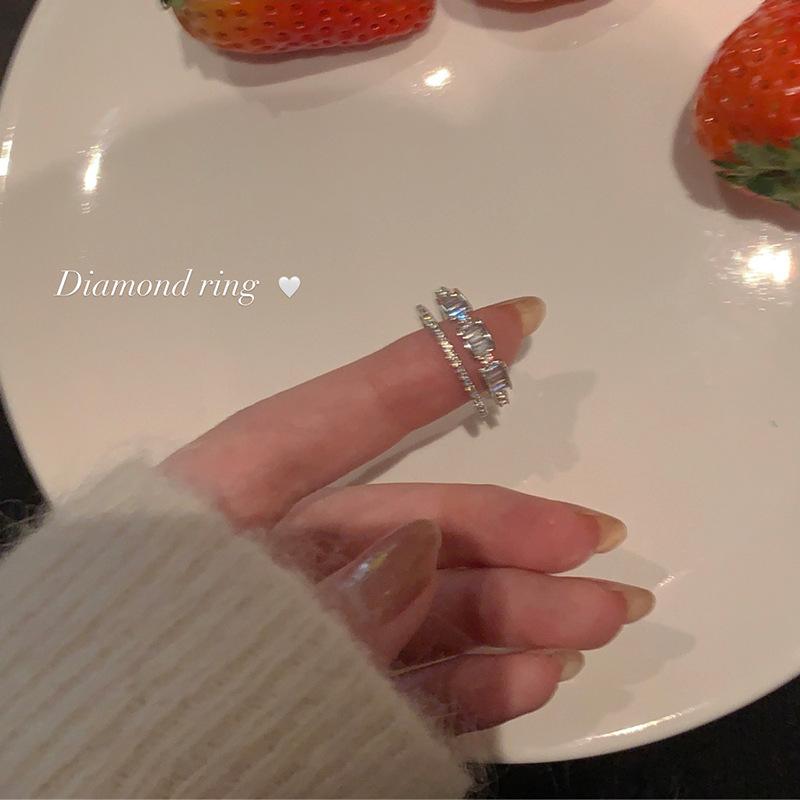 Exquisite Zircon Double-Layer Ring, Female Tide Light Luxury Niche Design, Advanced Sense Row Diamond Index Finger Ring, Open Ring.