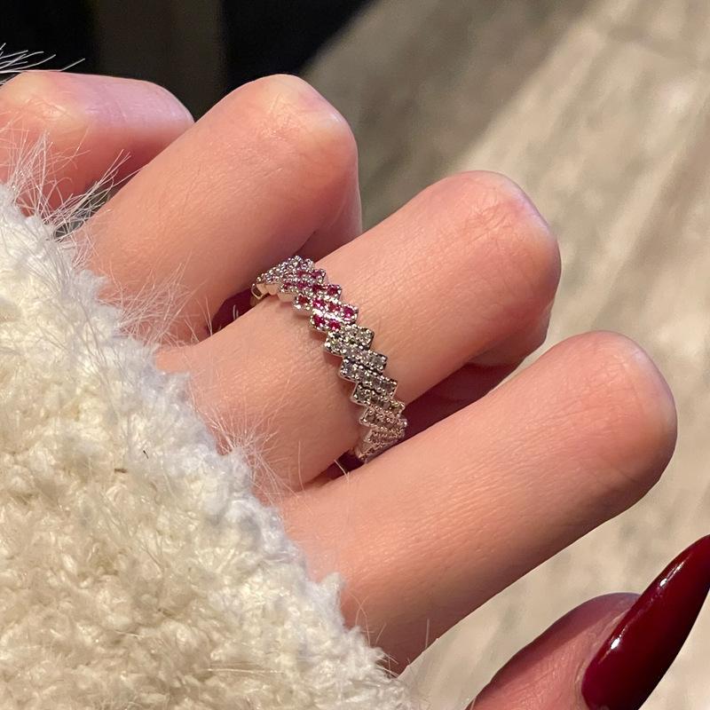 Color Full Diamond Micro-Inlaid Zir*****Pen Ring French Exquisite Super Fairy High-End Temperament Accessories Women