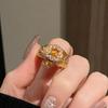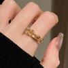 Flower Antique Vintage Brushed Tiger'S Eye Stone Open Ring Niche Retro High-End Accessories Women