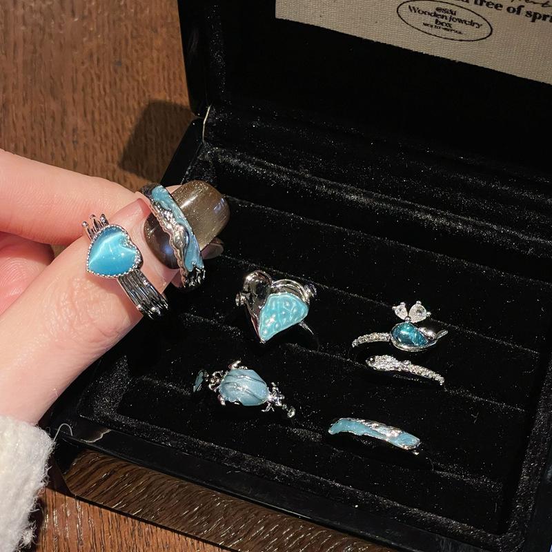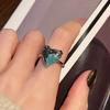 Sea Blue Fashion Dripping Oil Niche High-End Open Ring Zircon Light Luxury Love Accessories Women