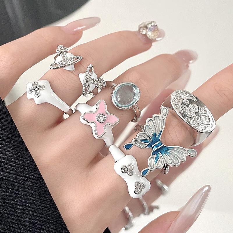 Contrasting Planet Enamel Oil Drop Opening Ring Butterfly Niche Design Ring Hip Hop Niche Design Index Finger Ring Girl