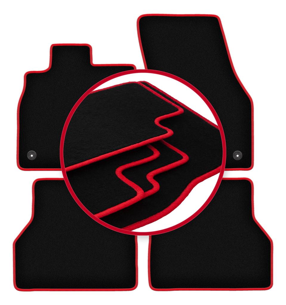 Velour Floor Mats with Red Edge For: Volkswagen Caddy IV Kombivan (2020-)