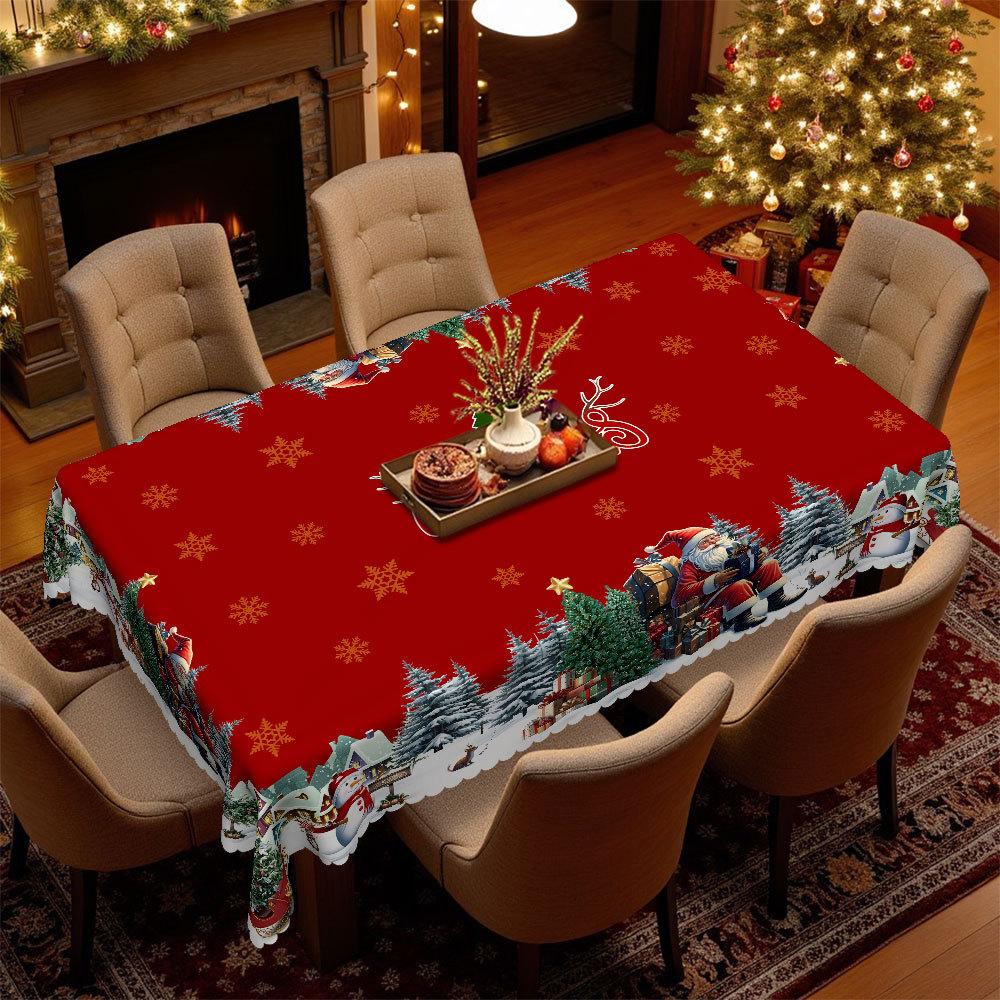 Christmas Rectangular Tablecloth, Waterproof And Oil-Proof, Ode To Joy Christmas Elements, Dining Table Coffee Table Holiday Decorative Cloth