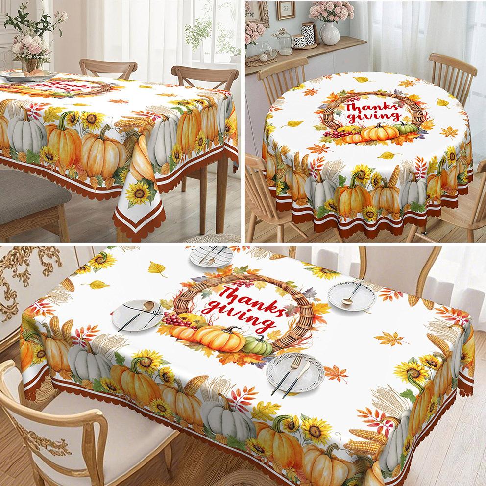 Thanksgiving Table Set Pumpkin Sunflower Tablecloth - Durable Polyester Rectangular Tablecloth With Leaves.
