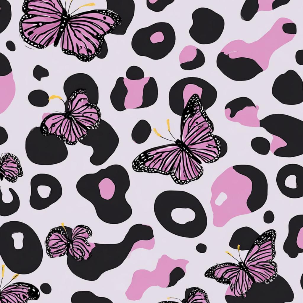 Pink Butterflies Leopard Print Wallpaper 22.83"X118" Waterproof Wallpaper for Living Room/Bedroom/Bathroom PVC Wall Sticker