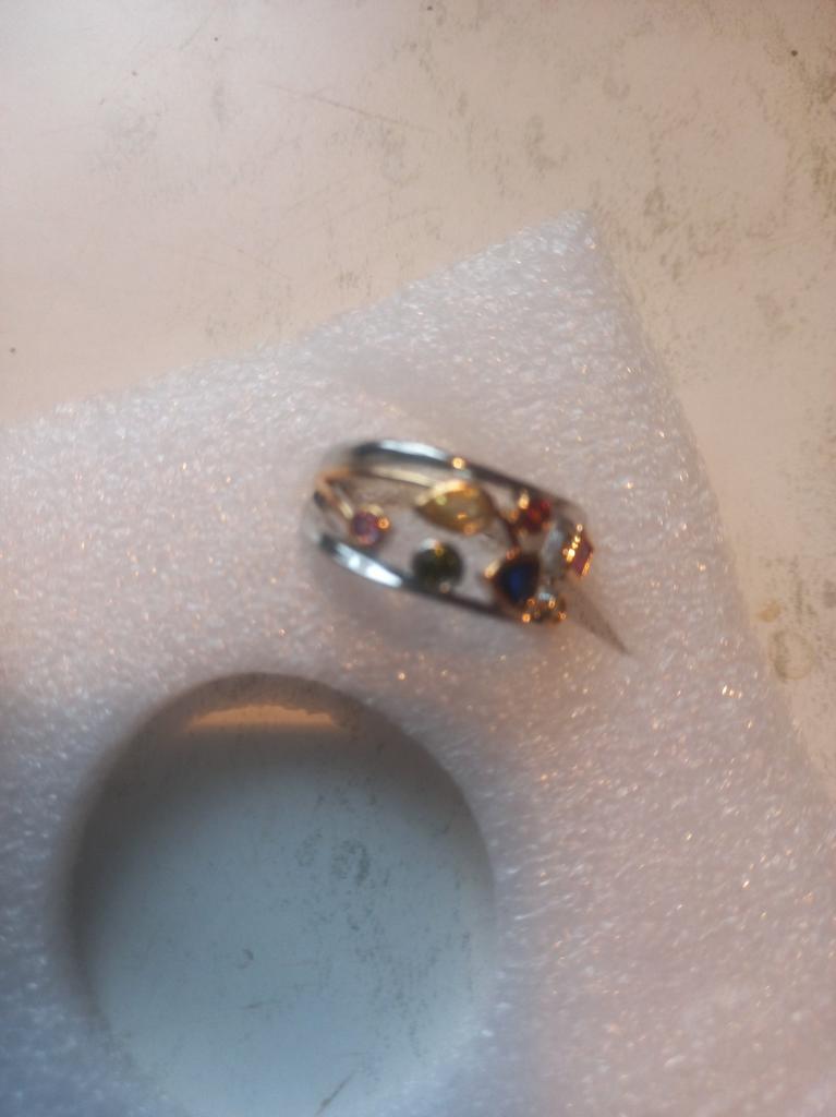 Cao Shi Multicolor Geometric Zircon-Inlaid Wavy Ladies Ring