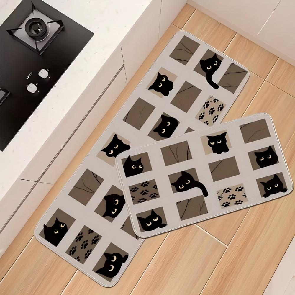 1/2pc Cartoon Cat Check Print Floor Mat, Non-Slip And Dirt-Proof, For Hallway, Kitchen, Bathroom, Home Decoration Carpet