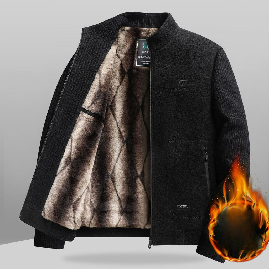 Autumn and Winter Men's Plus Velvet Thick Chenille Jacket Dad Loose Stand-up Collar Jacket