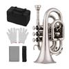 Mini Trumpet Bb Flat Brass Material Wind Instrument with Mouthpiece Gloves Cleaning Cloth Carrying Case Trumpet