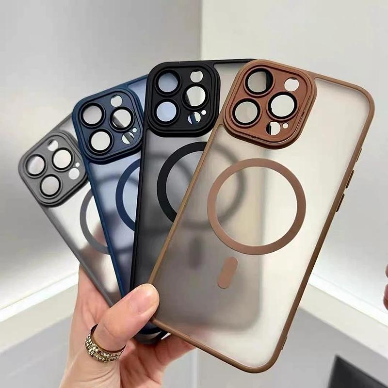 Luxury Magsafe Matte Transparent Phone Case For iPhone 11 12 13 14 15 16 Pro Max Plus Magnetic Clear Bumper Cases Cover