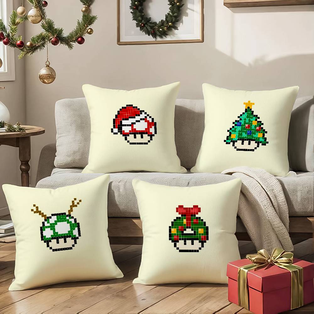 M-Mushroom Christmas Outfit Pillow Case Sofa And Living Room Decorative Cushion Covers Dust-proof And Mite-proof Invisible Zippe