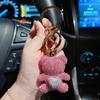 Unique Fun Keychain Gift For Girls Pure Handmade DIY Inlay Full Of Rhinestone Cute Bear Car Keychain Pendants And Bag Ornaments