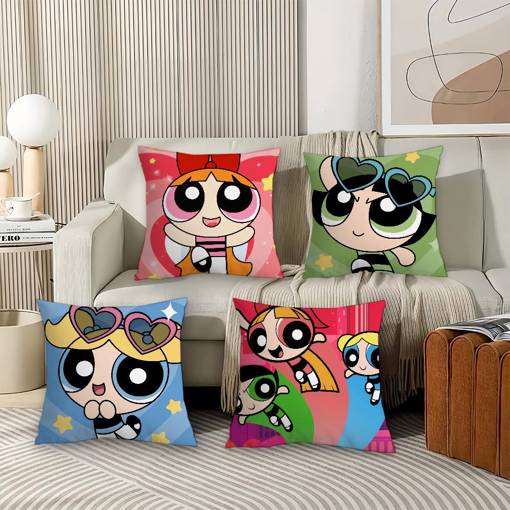Anime The P-powerpuff Cute G-girls Pillow Case Suitable For Bedrooms Living Rooms Cars Home Decoration
