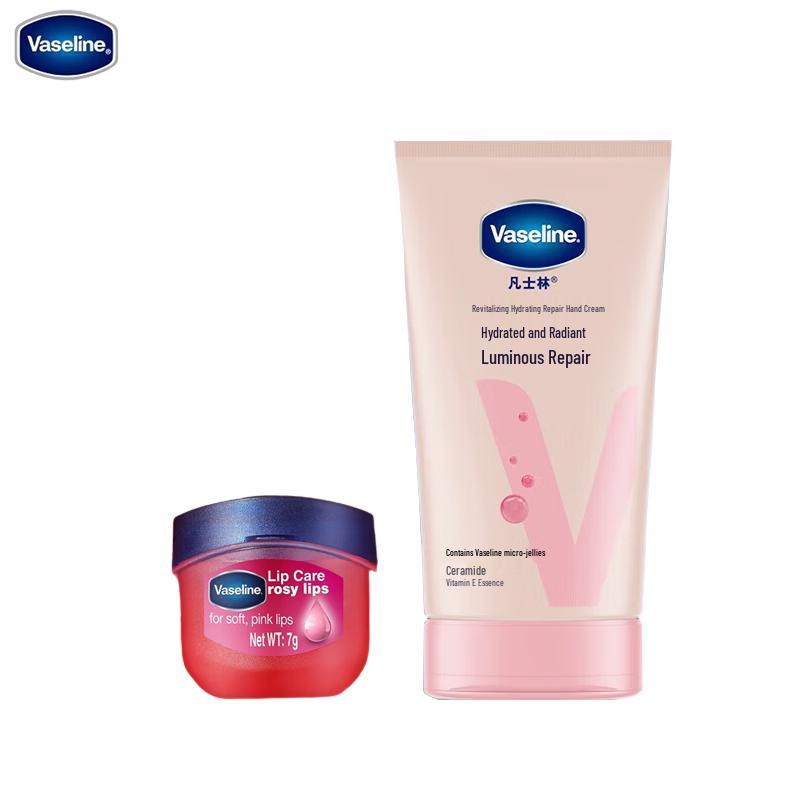 Vaseline Radiant Hand Cream & Rosebud Lip Balm Set