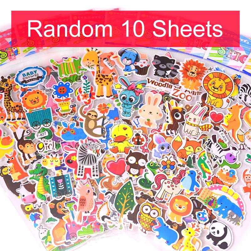 10 Sheets Kids Stickers Cartoon Animal Puffy Sticker Birthday Christmas New Year Gift for Girl Boy Cartoon Scrapbooking Stickers
