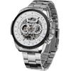 Winner Male Auto Mechanical Watch Skeleton Multi-Dial Stainless Steel Band Wristwatch