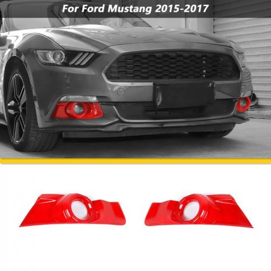 2x Red Front Fog Light Lamp Cover Trim Bezels for Ford Mustang 15-17 Accessories