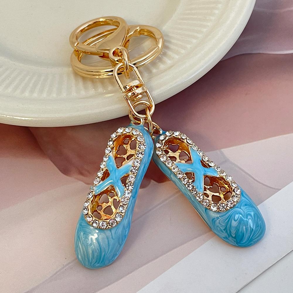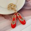 4 Color Enamel Ballerina Shoes KeyChain Rhinestone Crystal Car Key Ring Women's Handbag Pendant Souvenir Gift
