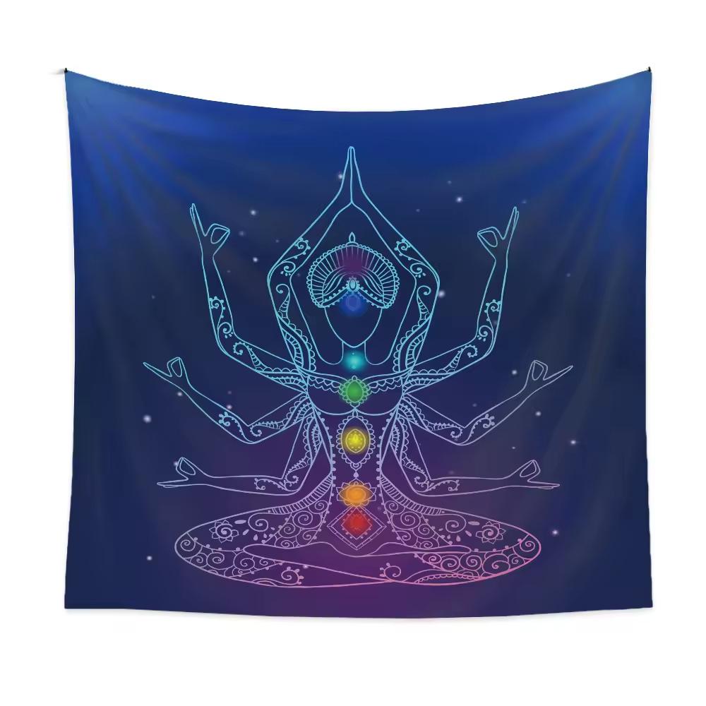 Seven Chakra Tapestry Indian Buddha Statue Meditation Wall Hanging Mandala Tapestry Witchcraft Bohemian Hippie Home Decor Yoga