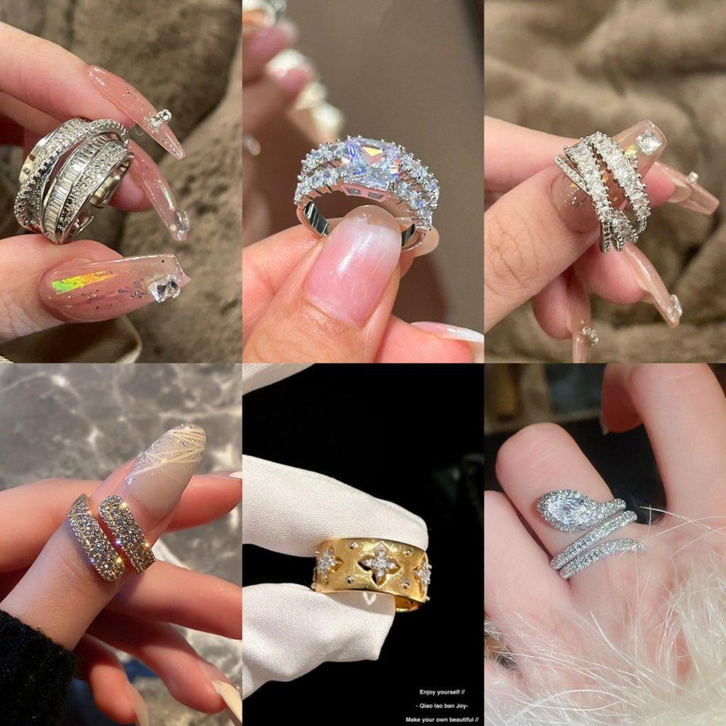 Platinum Zircon Multilayer Open Ring: Exquisite, Light Luxury, High-End Fashion, Versatile Jewelry Design