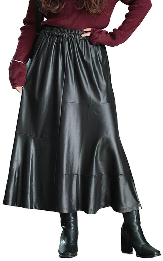 Gold Japan Plus Size Mermaid Faux Perfect for and Size Women's Skirt, Long, Leather, Stretch, Fall, Winter, Spring, 4L, Black, Maru-30076