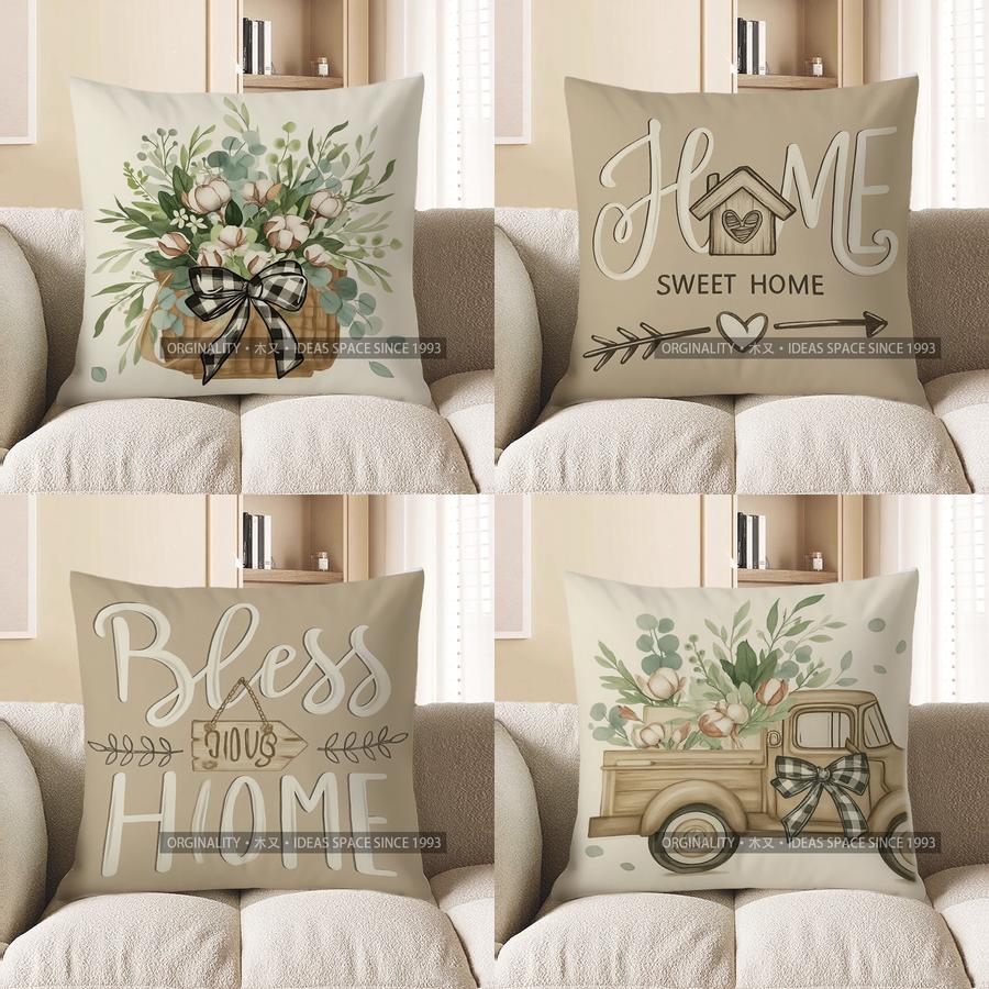 Home Decor Basket of Cotton Flowers with Checkered Bow Pillow Pattern Cushion Cover Suitable for Sofa Bedroom Car Pillow Cover