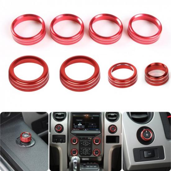 AC CD 4WD Release Mirrors Control Knob Decor Ring for Ford F150 2013-14 Red 8pcs