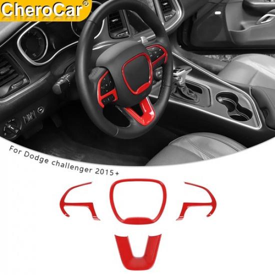 Steering Wheel Cover Trim Full Kit Frame For Dodge Challenger 2015+/Durango Red
