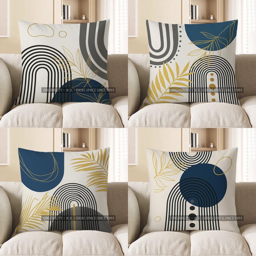 Home Decor Modern Geometric & Leaf Pattern Pillow Cover Pattern Cushion Cover Suitable for Sofa Bedroom Car Pillow Cover