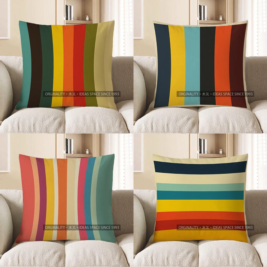 Home Decor Vibrant Striped Pattern Digital Print Pillow Cover Pattern Cushion Cover Suitable for Sofa Bedroom Car Pillow Cover