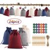 24PCS Christmas Themed Printed Linen Candy Bags Christmas Pattern Candy Bag Advent Calendar Bundle Cotton Linen Gift Bag