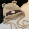 Cute Bear Ears Straps Wool Hat Female Warm Big Head Circumference Showing Face Small Knitted Ear Protector Lei Feng Hat