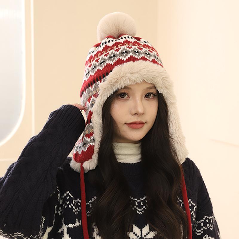 Wool Hat Women's Season Thickened Warm Face Small Ear Protection Plush Hat Riding Cold Cover Lei Feng Hat