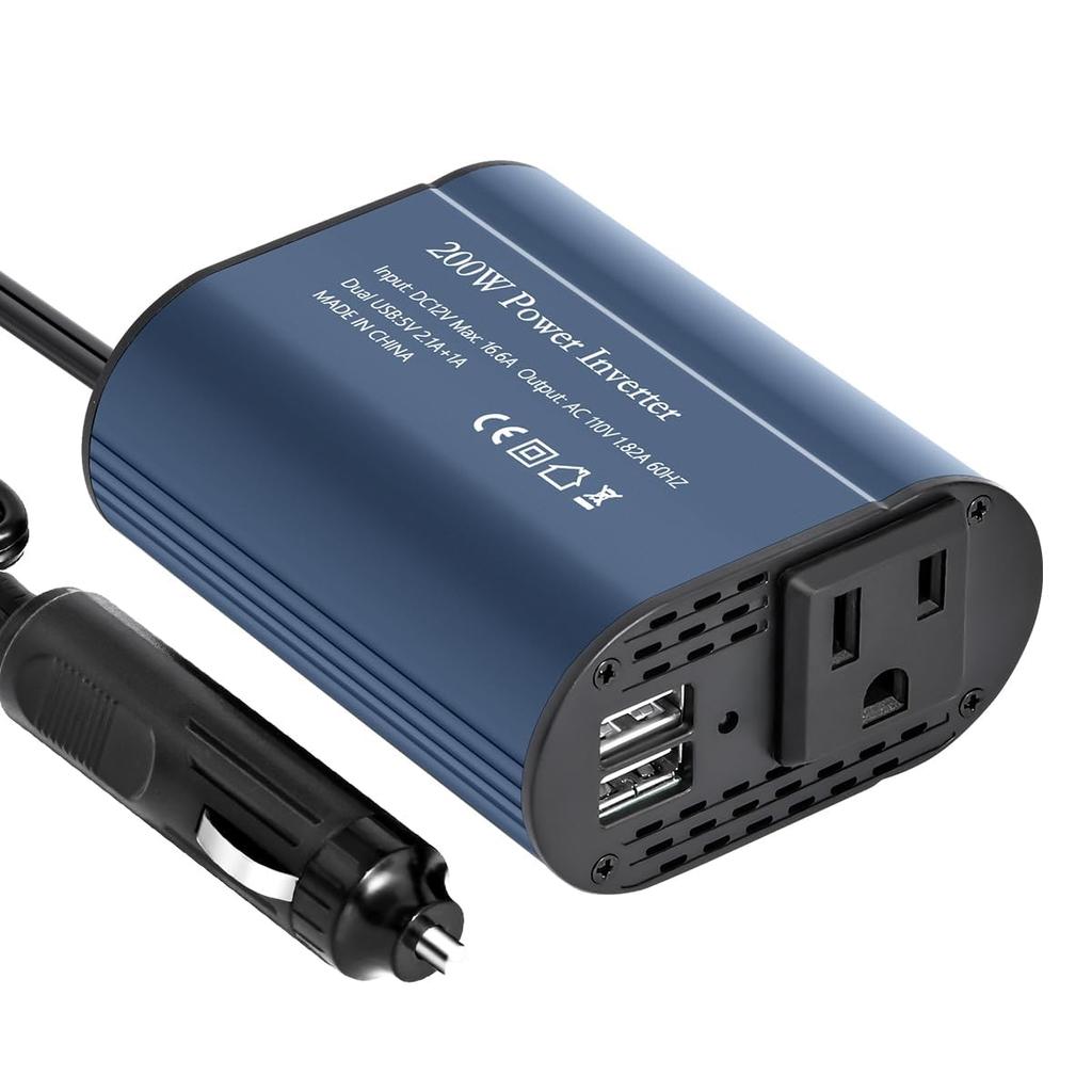 200 W Inverter, Cigarette Lighter Socket, Supports Rapid Charging, Car Inverter, Converts DC 12