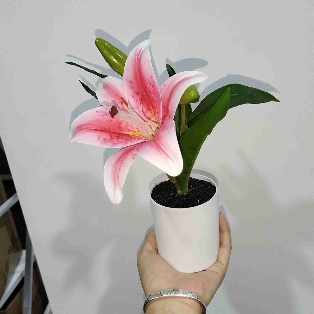 Multicolor Lilies Artificial Flower Potted Plastic Photo Props Simulation Flowerpotted Elegant Fake Flower Home Decoration