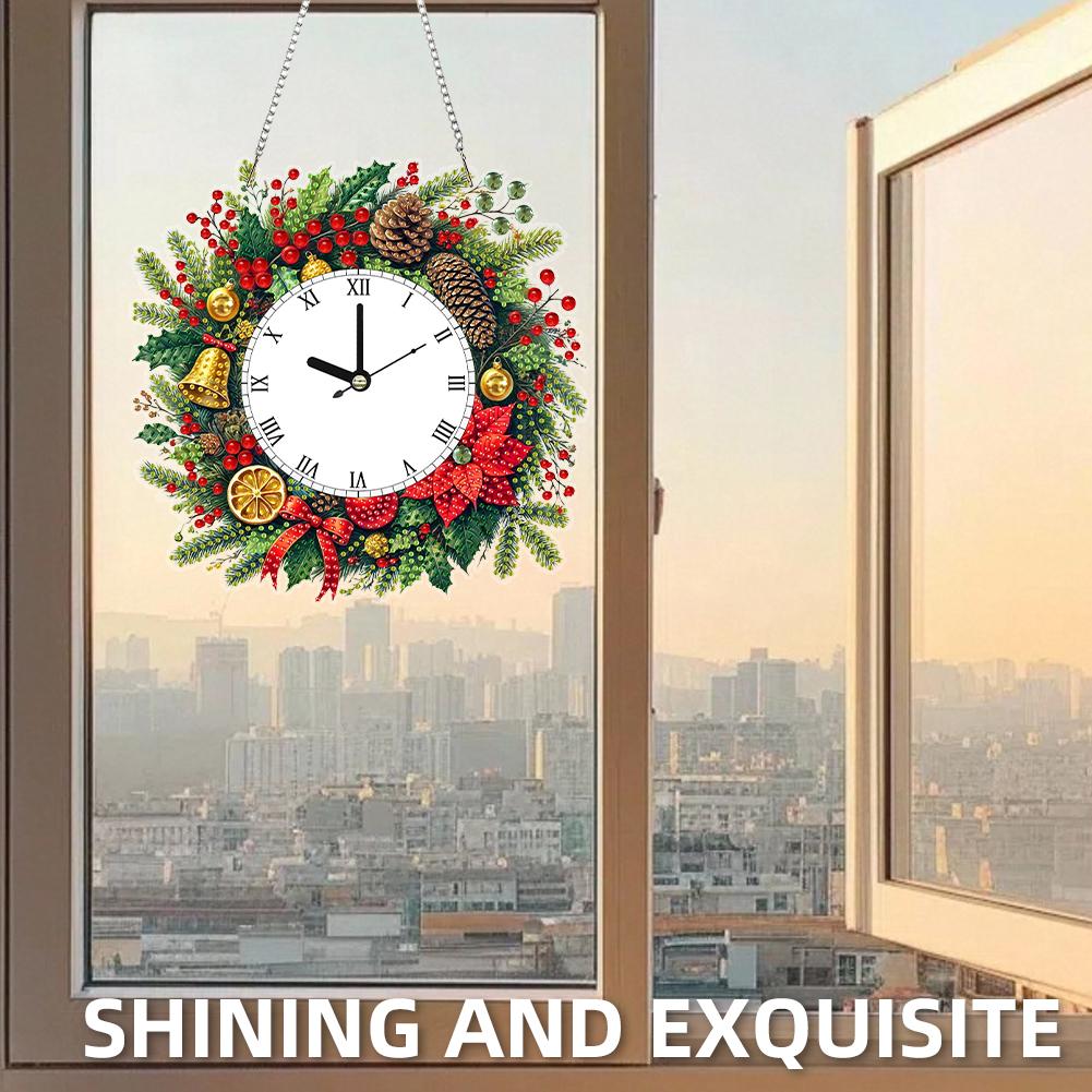 2D/Flat DIY Special Shape Rhinestone Diamond Art Clock Wall Pendants Diamond Clock Art Pendant Window Hanging Art for Home Decor