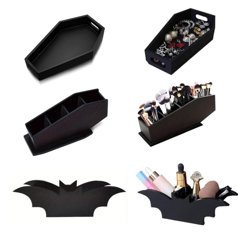Makeup Brush Holder Wooden Black Storage Box Cosmetic Organizer Pen Holder Halloween Themed Decor Organization Home Storage