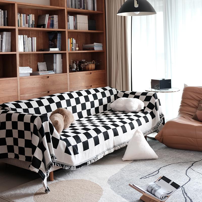 Retro Checkerboard Chessboard Grid Throw Blanket Tapestry Tassel Two Side Bedspread Outdoor Camp Beach Towels Sofa Chair Cover