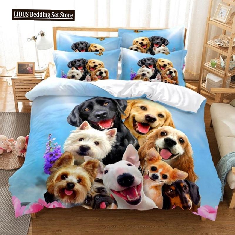 Cat And Dog Duvet Cover Set 3d Printing Cute Animal Theme Comforter Cover King Queen Size For Kid Boy Girl Polyester Bedding Set
