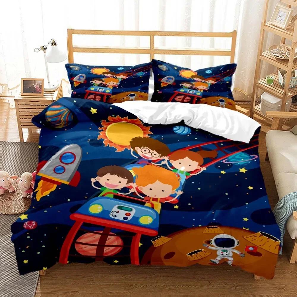 Cartoon Astronaut Digital Print Comfortable Duvet Quilt Cover Pillowcase Bedding Set Children Bedroom Decoration Home Textile