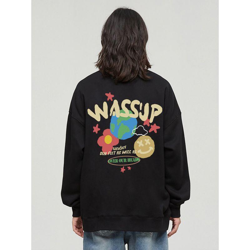 Wassup Heods American Trendy Brand Crew Neck Sweatshirt for Men and Women, Autumn and Winter Loose Casual Heavyweight Fleece Couple Tops