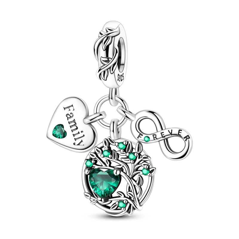 Original 925 Silver Charm Bead Green Zircon Family Tree Pendant for Bracelet Necklace DIY Jewelry Gift