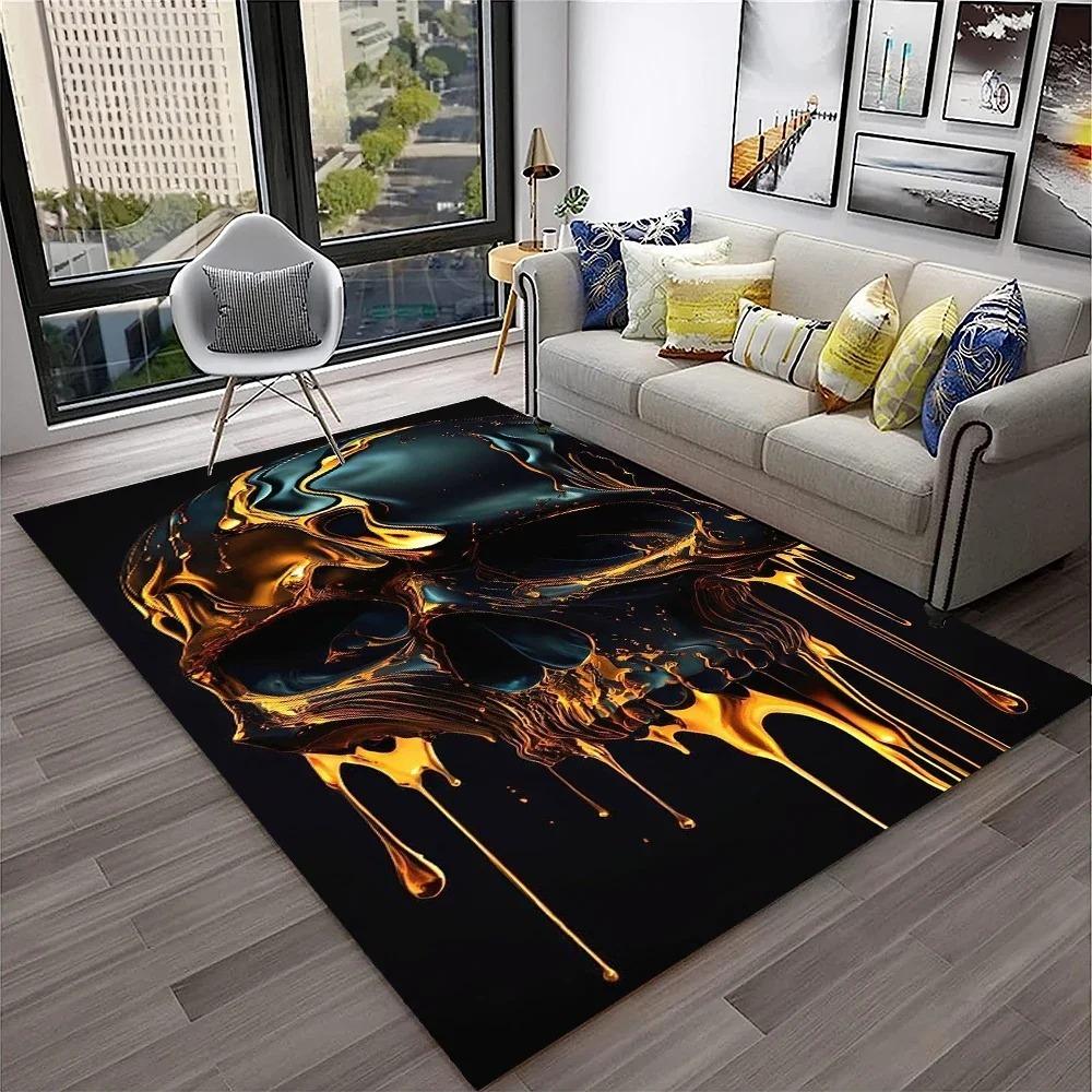 Large Area Rug Rebellious Skull Pattern Carpet Living Room Floor Mat Anti-slip Bedroom Ground Mat Easy To Clean Soft Rug Gift