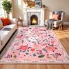 Floral Pattern Carpet Mat - Living Room and Bedroom Carpet Decoration Romantic Design with Pink Red Flowers and Green Leaves