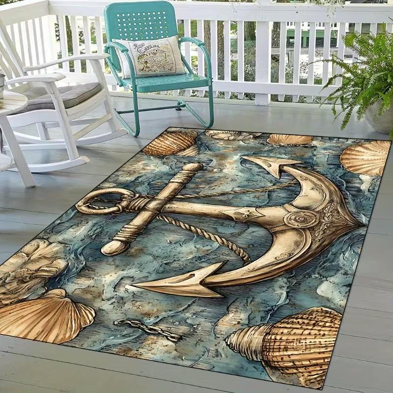 Navigation Ship Anchor Carpet Sailing Ship Rudder Wave Ship Anchor Carpet Living Room Bedroom Decoration Mat Navigation Carpet